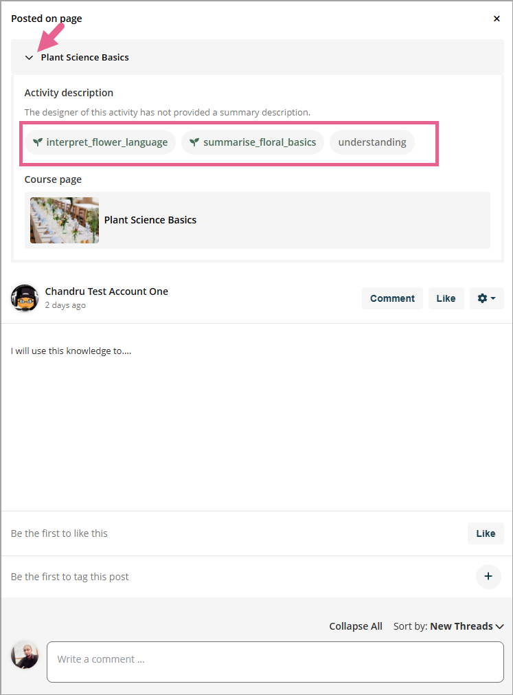 Protip: You can also add outcome tags to pages or widgets after learners have posted; the tags will apply retroactively to their posts.