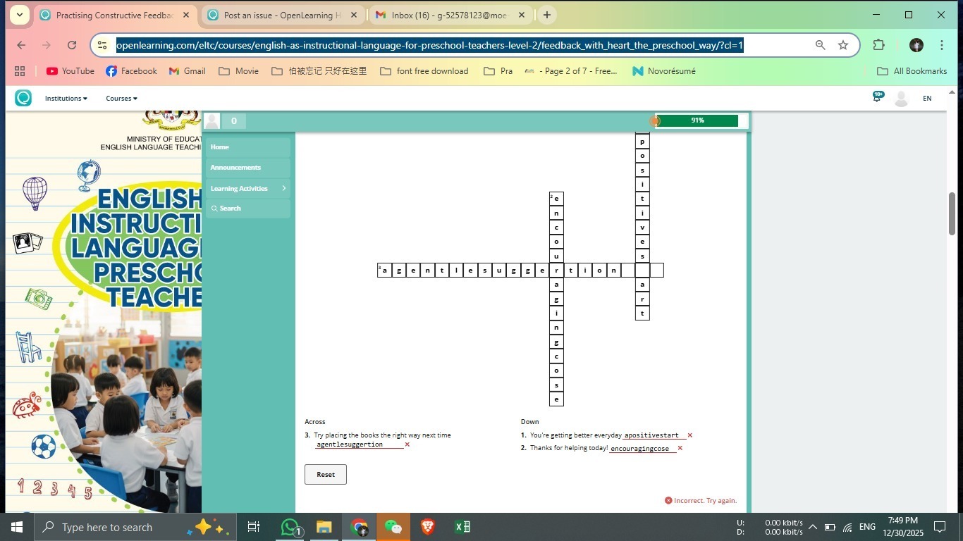 I can see that you’ve now completed the course. Could you please confirm whether this issue is still occurring, or if it has been resolved?