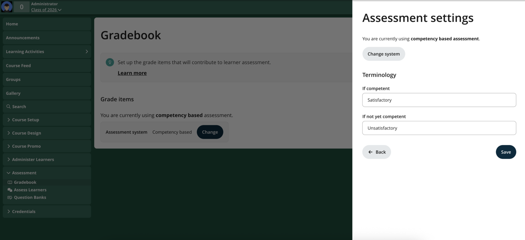After selecting Competency-based, you can customise the terminology that educators and learners see: