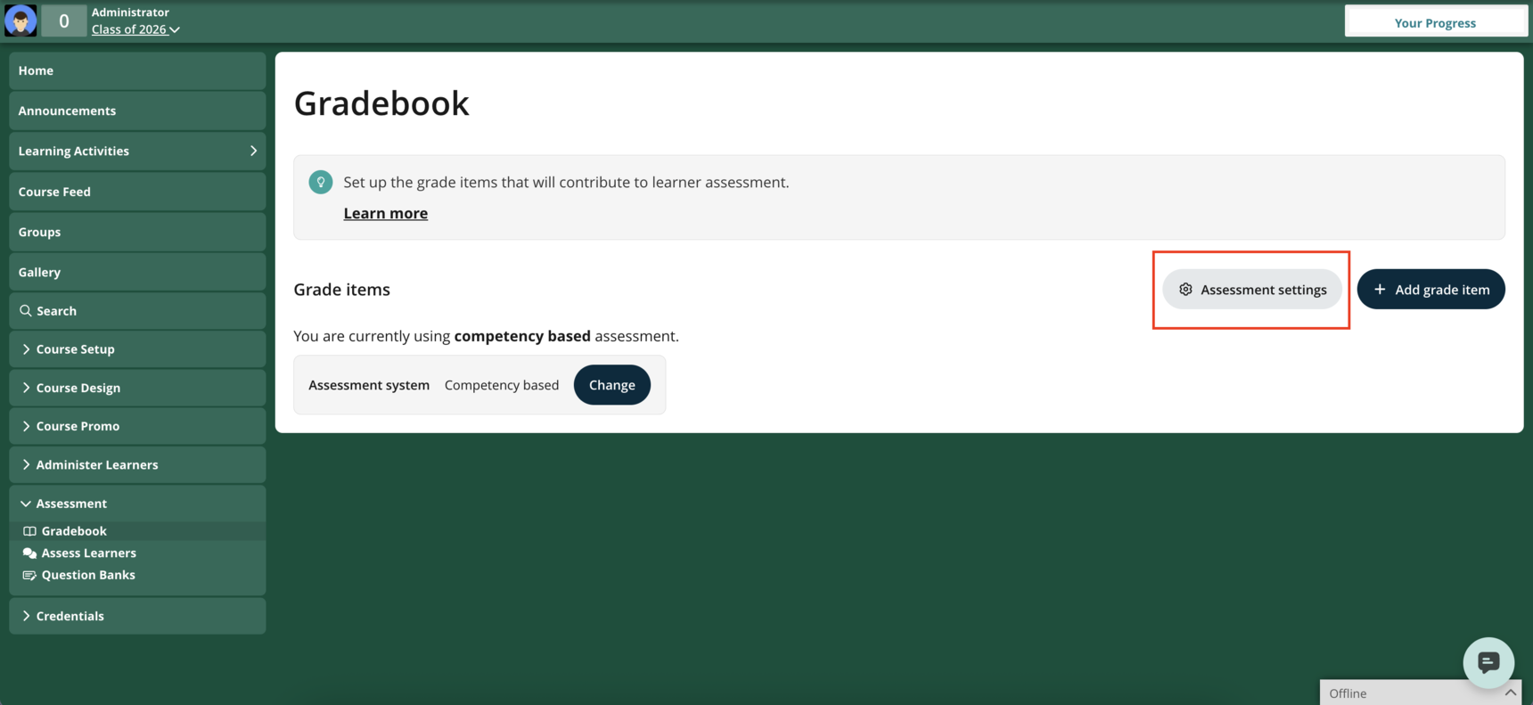 Note: Assessment systems are applied per class, not per course. You can use different systems for different classes.