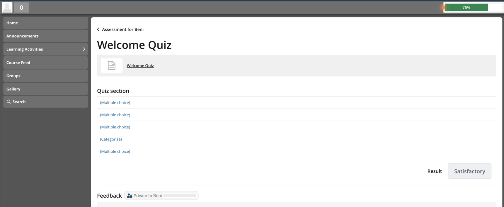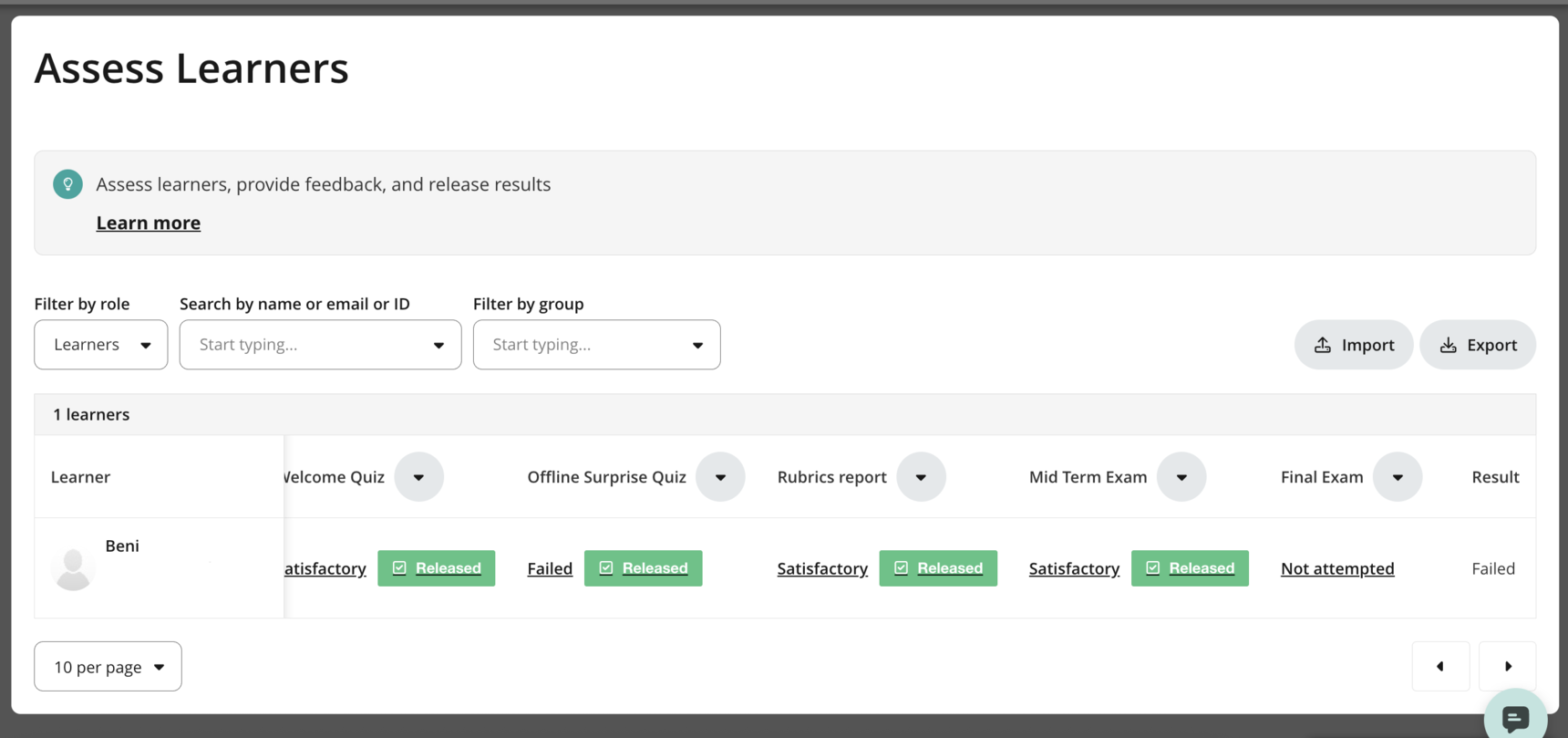 Score-based – Learners earn numerical scores on weighted assessments. Scores can be grouped into letter grades or bands. (This is the default for existing courses.)