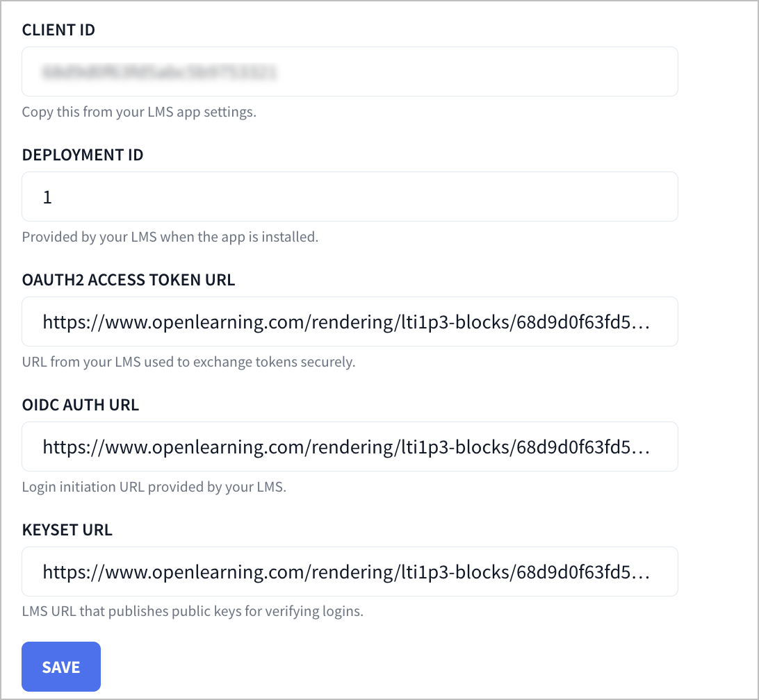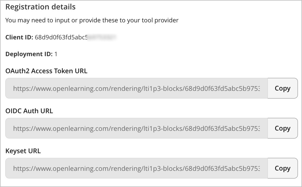 Open the LTI connection on OpenLearning again and scroll to the Registration details.