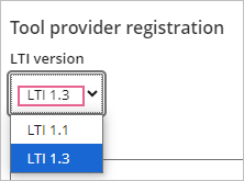 Enter the tool provider name, and on the Tool provider registration section, select LTI 1.3 for the LTI version.