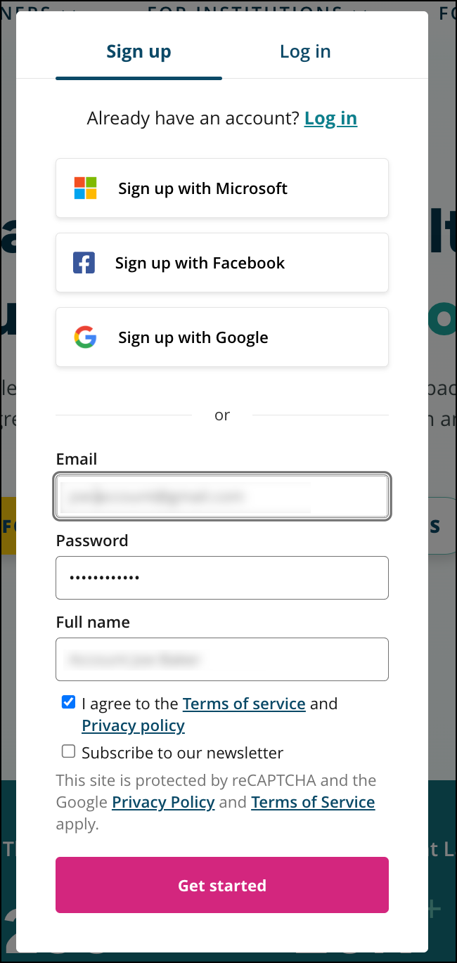 Note: If you accidentally closed the window earlier, you can restart the sign up process and you can still use the code.