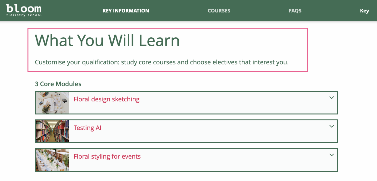 4. Program - courses. The title and blurb set here will appear above the mandatory courses.