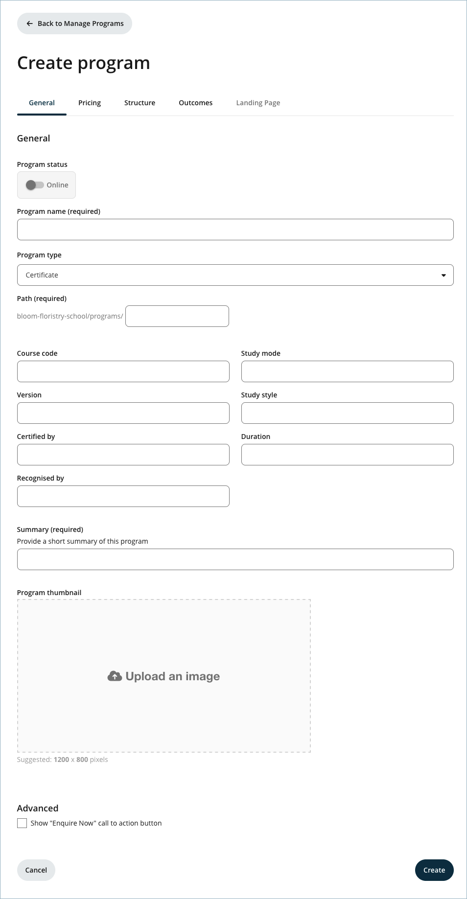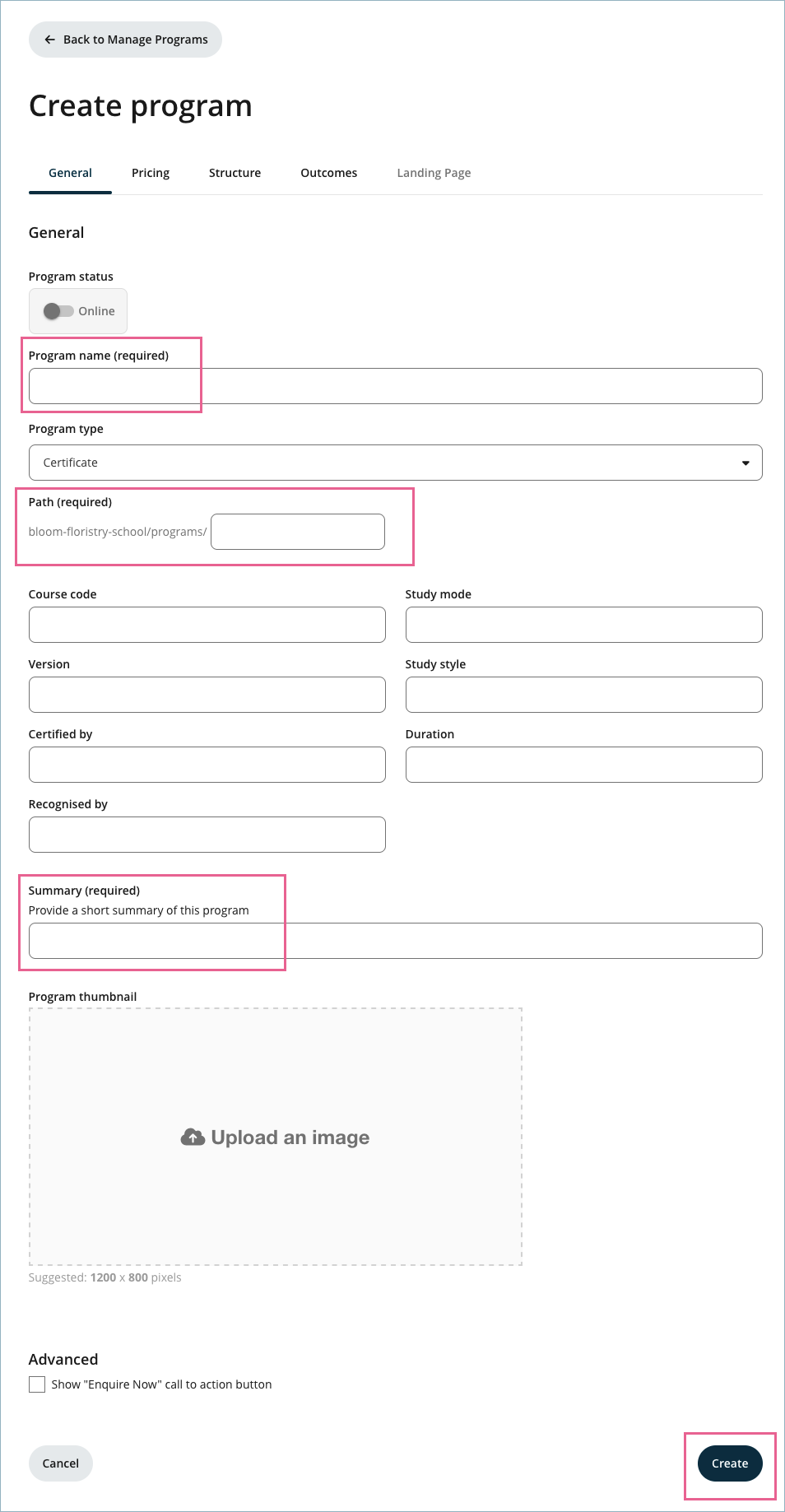- Path - This is the URL for the program’s landing page. Please note that once it is set, it cannot be modified.