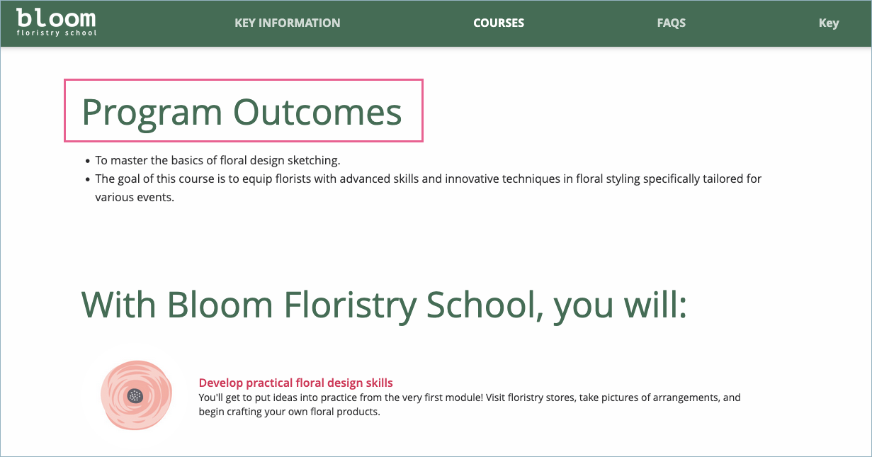 5. Program outcomes. The title set here will appear above the added program outcomes.
