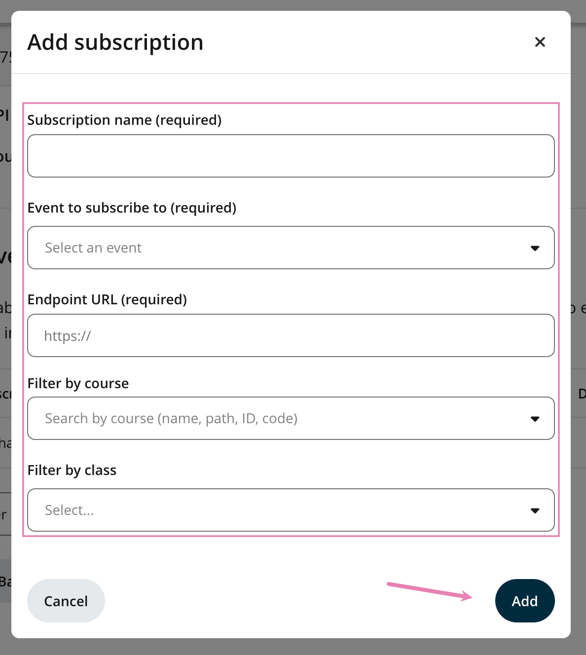 * Note: The optional fields (courseID and classID) can be removed if you wish to capture actions for the entire institution.