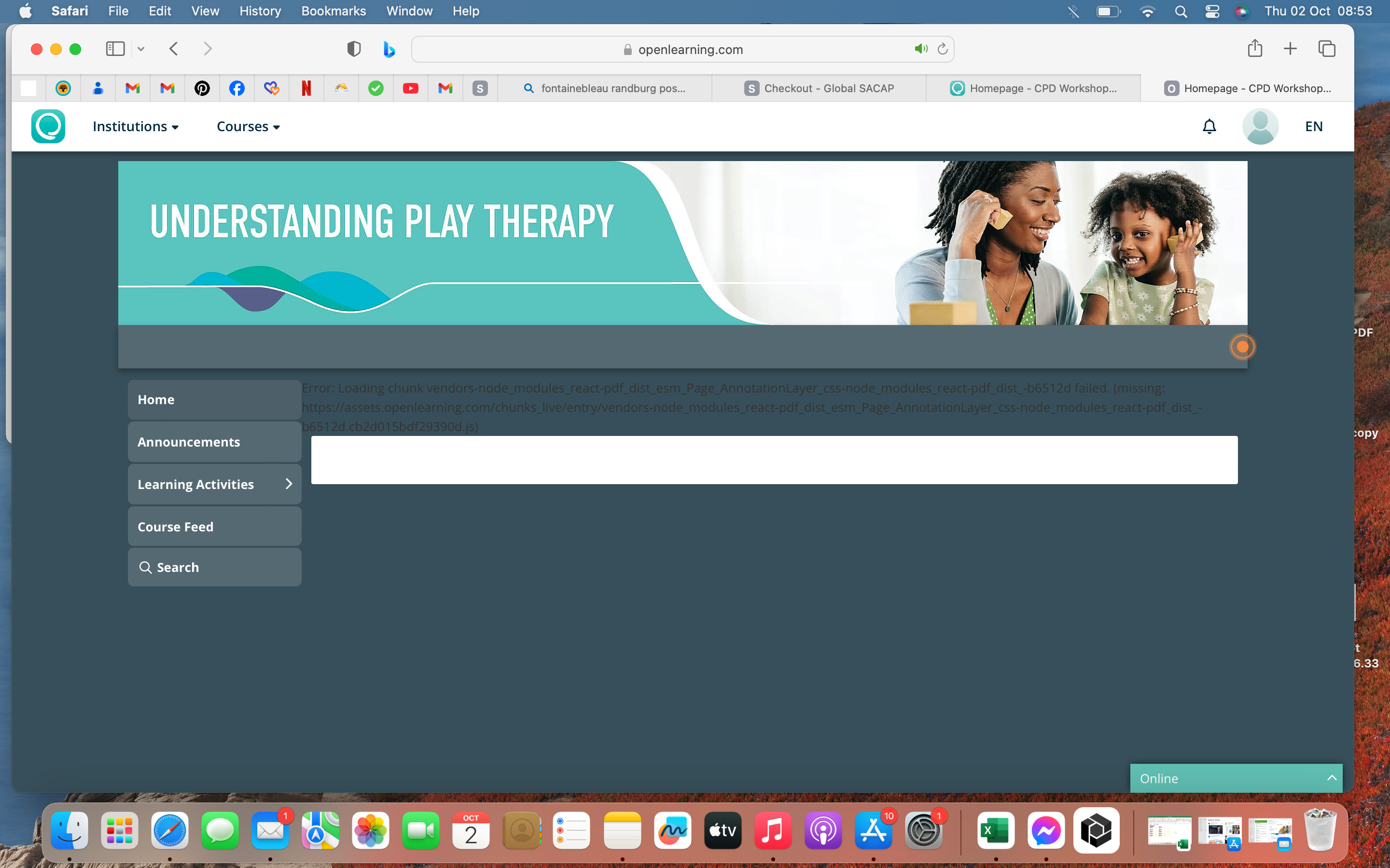 Try accessing the course using a different browser (e.g. Chrome, Firefox, Edge).