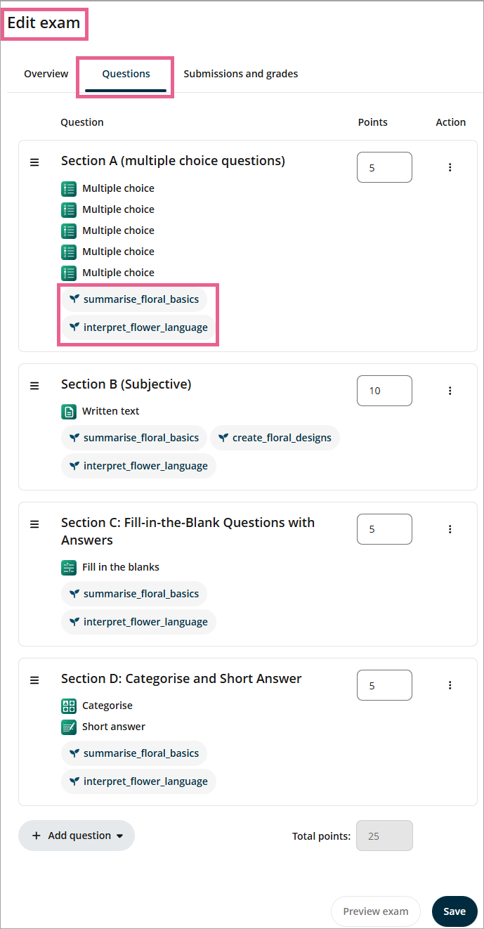 Tagging course learning outcomes (CLOs) here is an essential step in supporting the Learner Attainment Report — an exportable report available from the Assess Learners page. This report combines learner grades and CLO alignments to give educators a clearer view of learner progress.