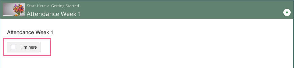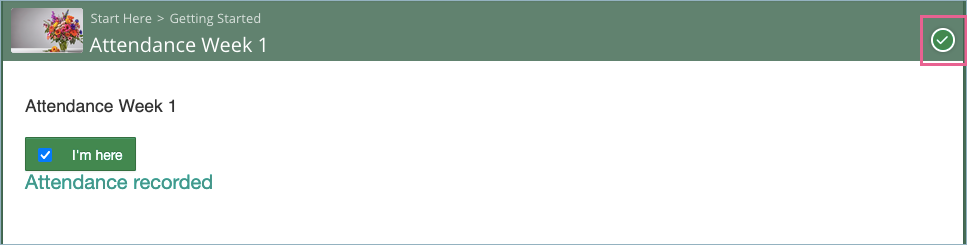 When a learner visits the page, they should tick the checkbox to mark the activity as complete. If the checkbox is the only activity on the attendance page, this action will also mark the page as completed.