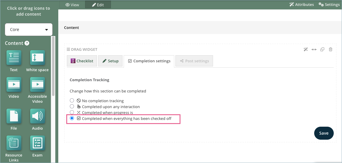 To test the webhook triggered by completing the Checklist widget, log in to the course with your learner account and then tick the Checklist widget to complete the activity.