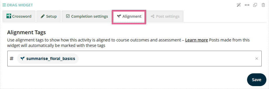 Assign course learning outcomes to the Crossword widget