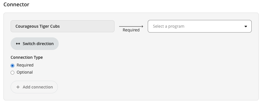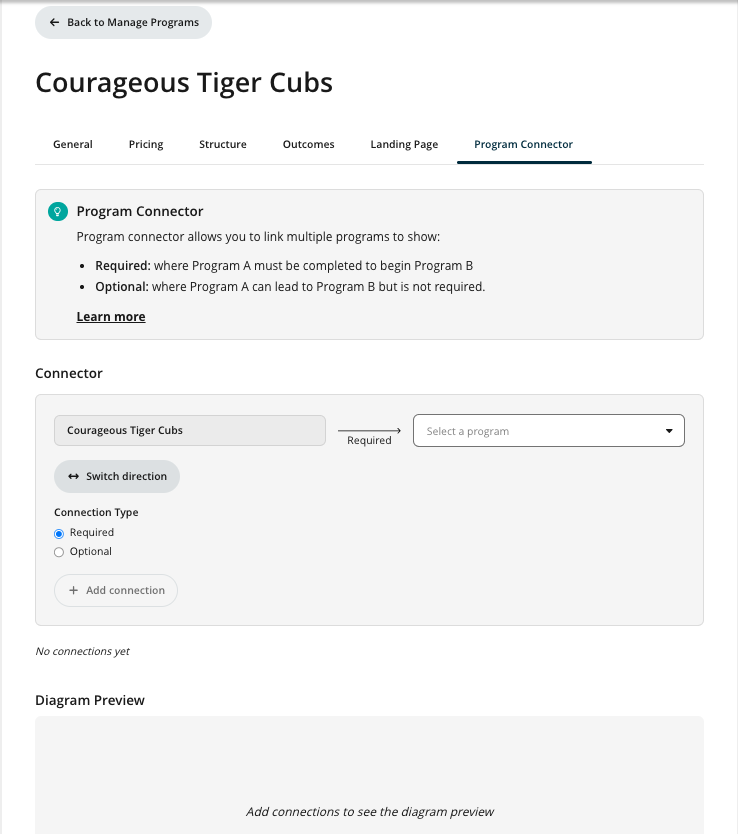The Program Connector lets you link programs together to define how learners progress from one program to another.