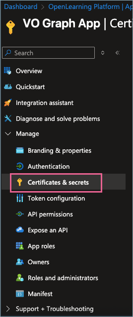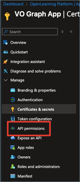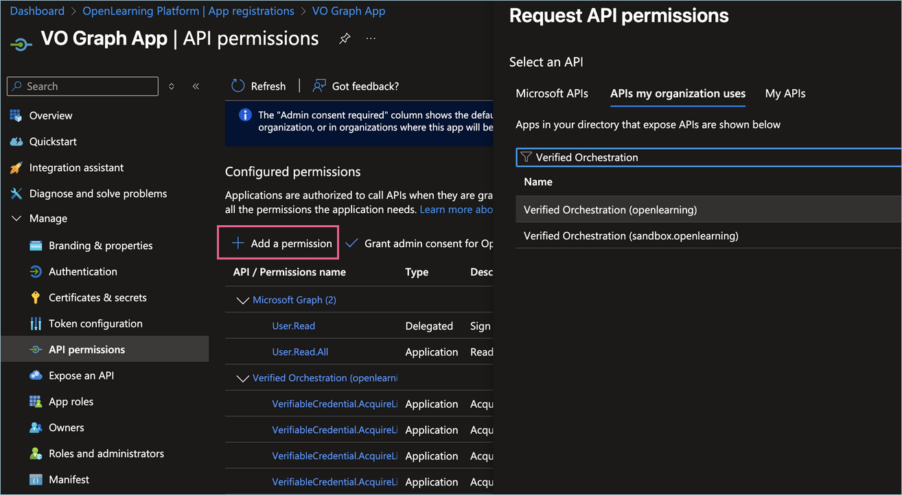 To complete the connection between the OpenLearning VO Credentials app and your VO instance in Microsoft Entra ID, your VO instance must include the required Application Roles. To configure these roles, please follow the steps outlined in this section How to set up the required Application Roles in the Microsoft Azure Entra ID Portal?