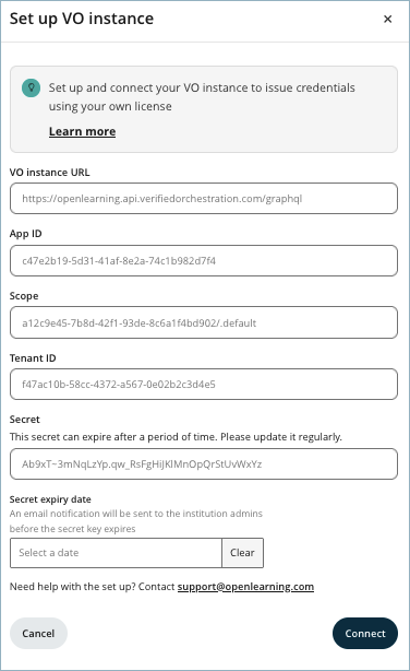 This is the URL of your VO GraphQL instance that OpenLearning will use to synchronise data (e.g., course credentials) and issue credentials on behalf of your VO instance.