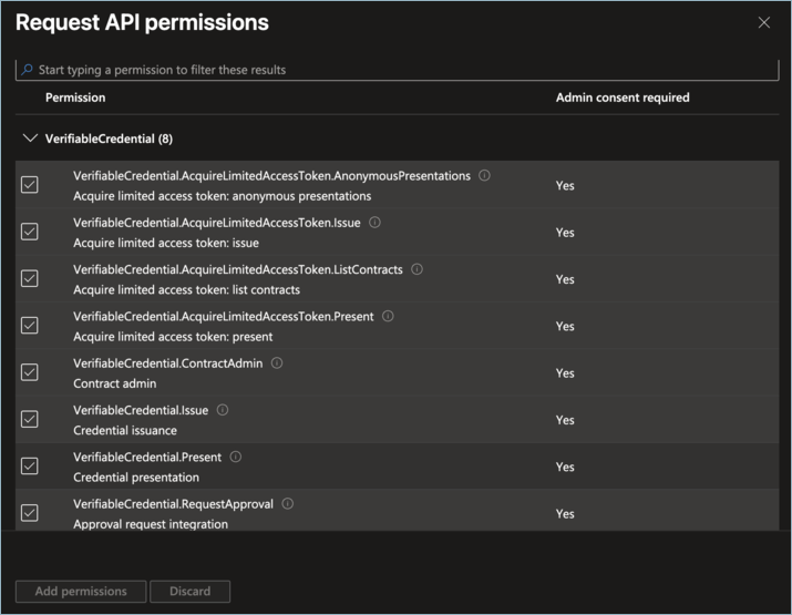 By default, all VO credentials use a standard credential type called CourseCompletionCredential. However, you can only require learners to present a custom credential type that your institution has set up and issued.