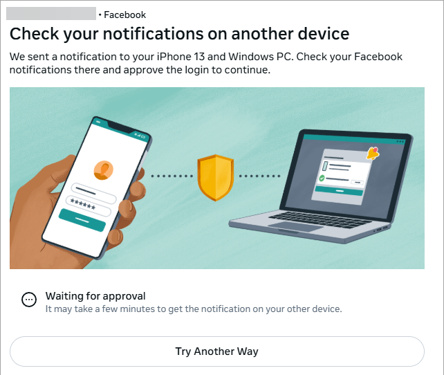 Note: You can also approve the log in another way by clicking the Try Another Way button.