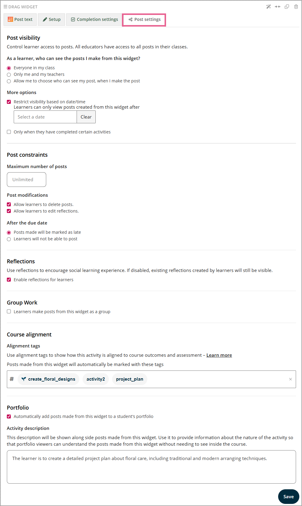 - control when the posts can be viewed (after a certain task is completed or a specific date)