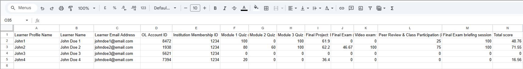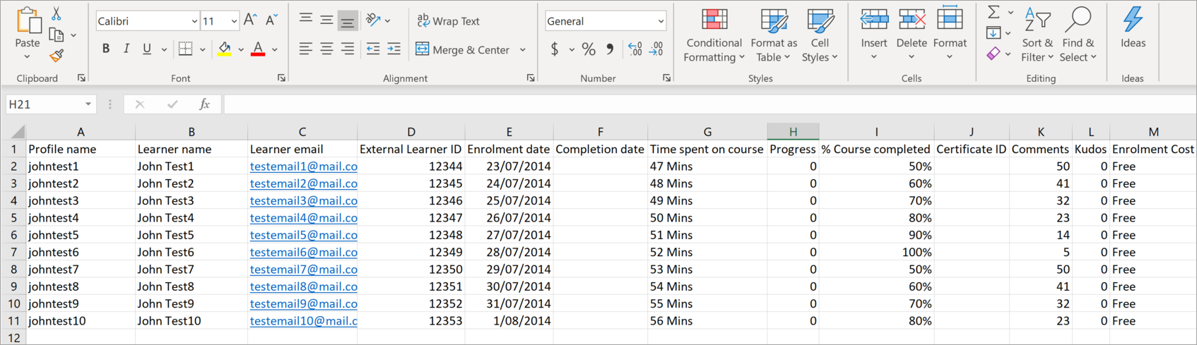 Educators and course creators may need to keep a record of learner data such as profile names, course completion percentages, External Learner IDs, and other important details.