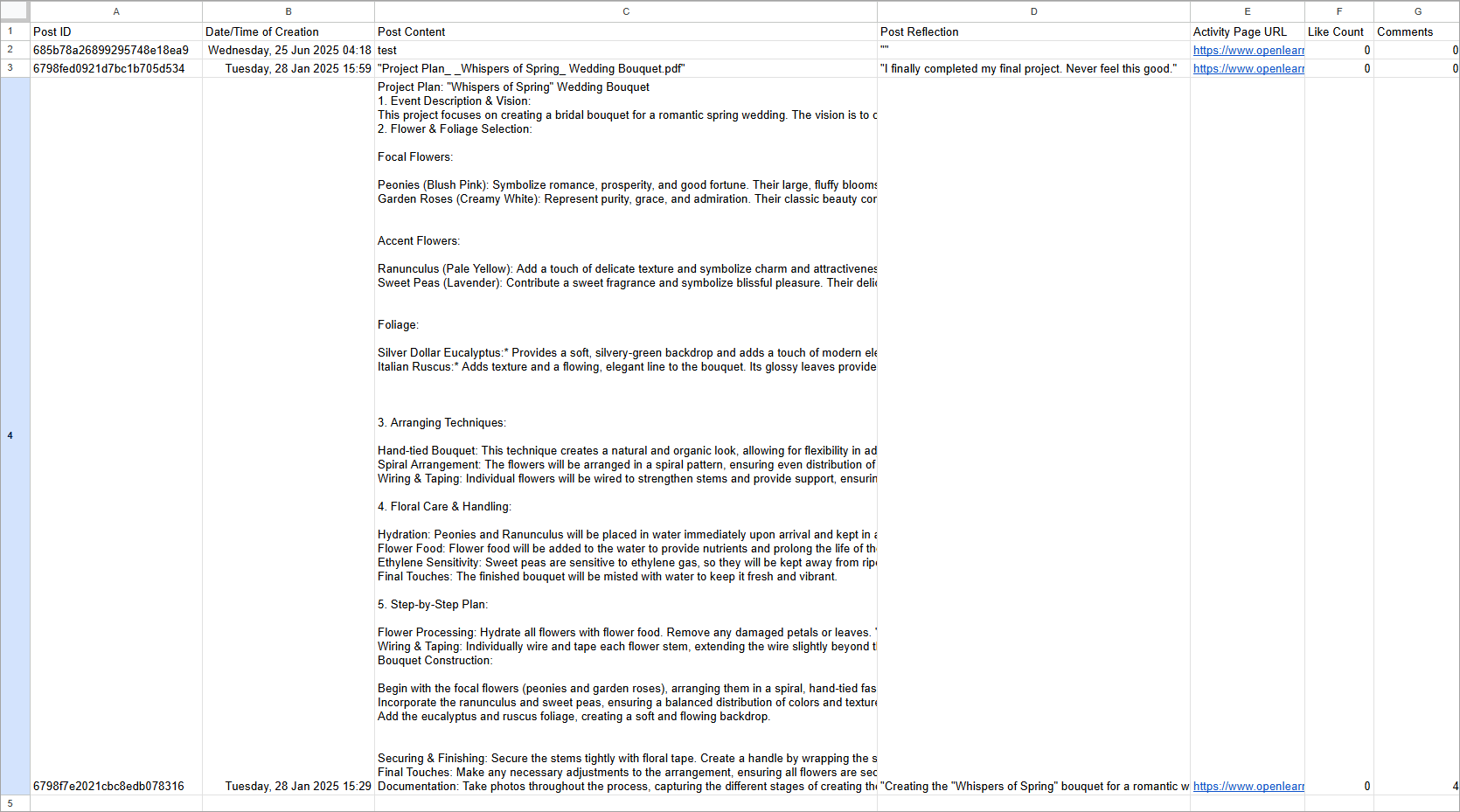 - Include learner’s posts: Adds each learner’s posts made within the class to the export for content review or moderation.