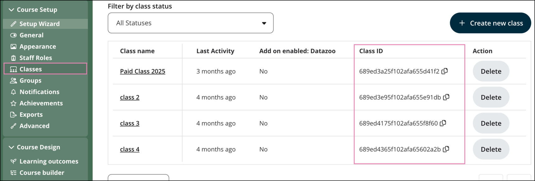 A class refers to a cohort of learners who complete a course together. All learner-generated content and artifacts (i.e. comments, likes, shares, posts) are only visible to others within the same class.