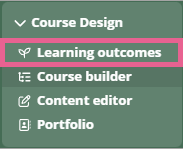 You can edit your course learning outcomes from the Learning outcomes page located under Course Design in the sidebar.