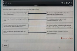 I have a trouble when submitting the Match Teacher's Action (1-4) with its corresponding Purpose (A-D). The answer always incorrect and rejected. But, when I click the button reset,…